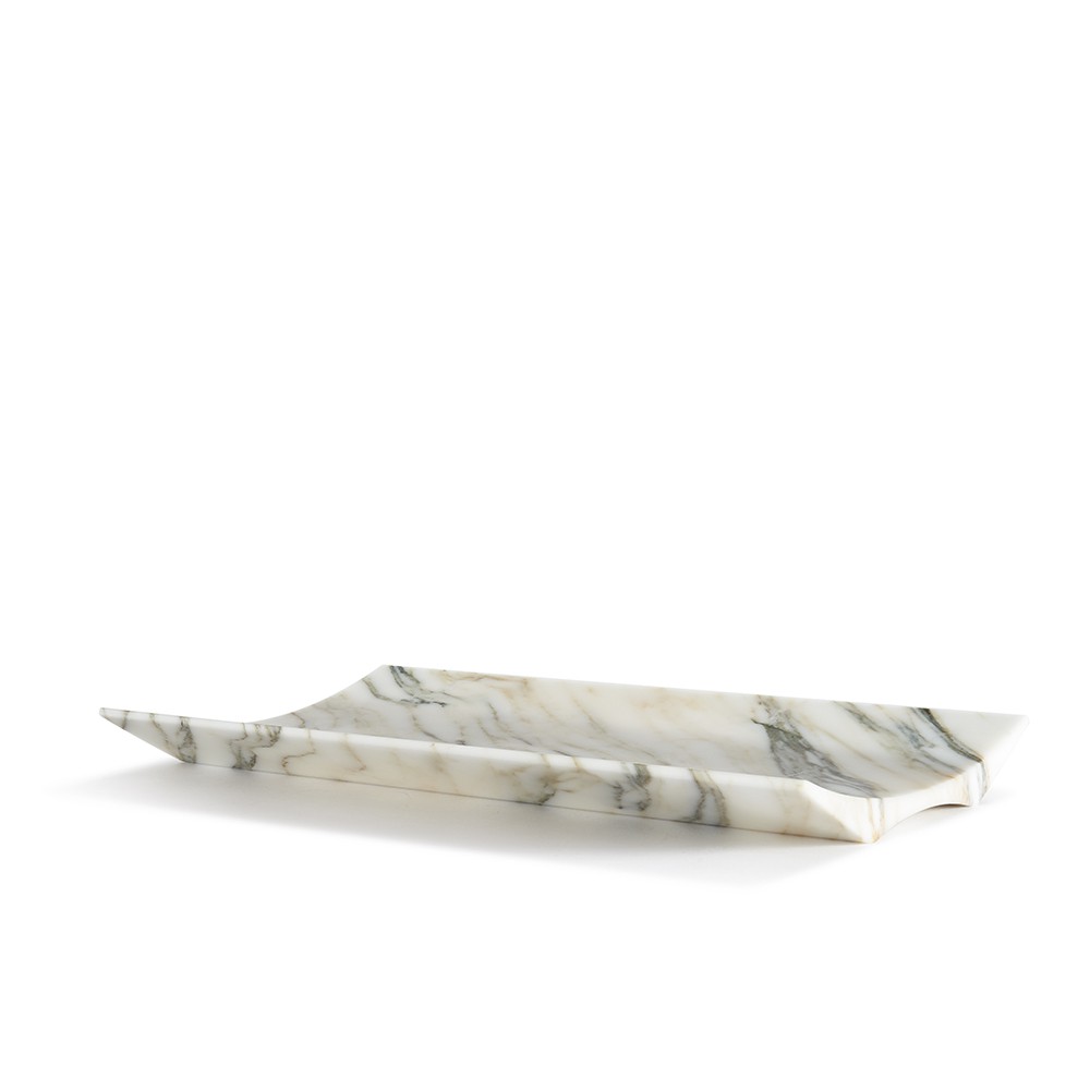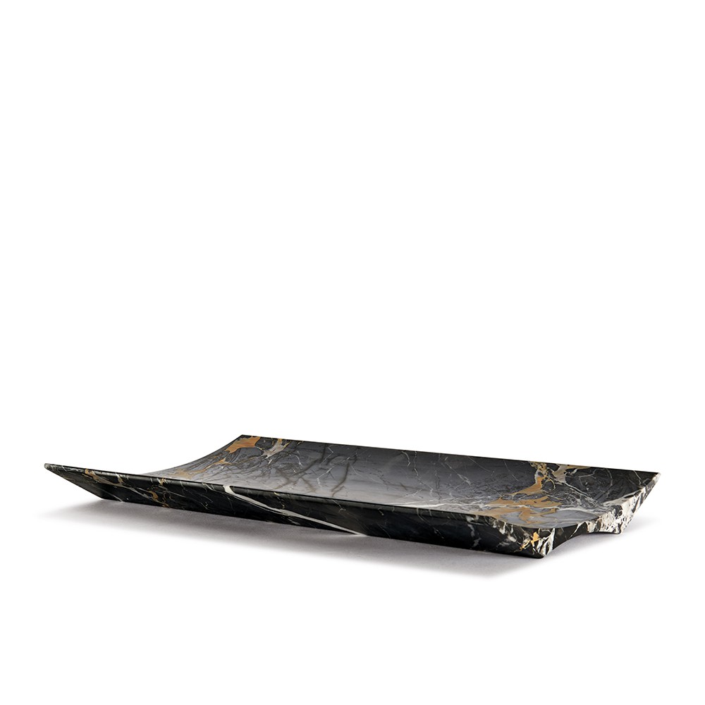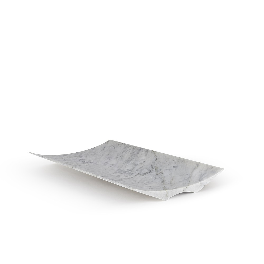 Un’arca leggiadra, solida al contempo, maestosa al centro della tavola, la venatura del marmo più pregiato come monumento alle piccole cose che rendono bella la vita. Un frutto, il pane, gli oggetti più cari. Ecco il contenitore in marmo per l’abitare quotidiano: un oggetto-scultura che eredita forme archetipiche del mondo classico, tanto care ai maestri del design (Enzo Mari in primis). Lo sapevano i grandi scultori che ogni pezzo di marmo viene estratto dal cuore della terra con una venatura sua propria. Così, questo centrotavola, portaoggetti, fruttiera, ha una grana, dei riflessi e delle cromie sempre diverse che rendono ogni pezzo un unicum.