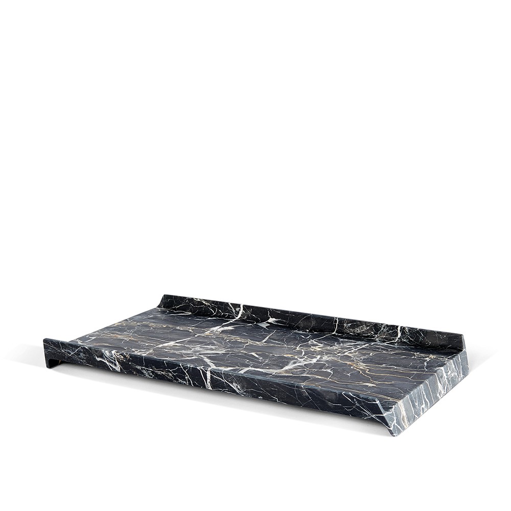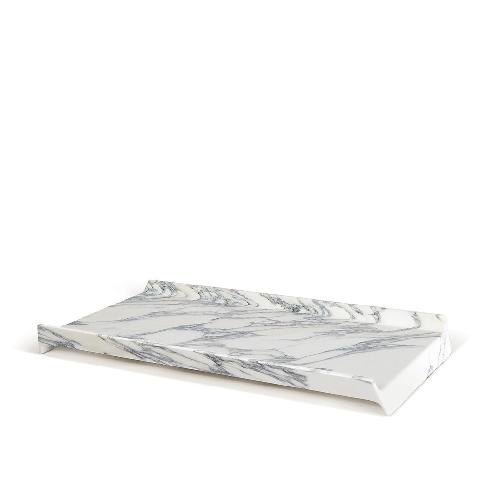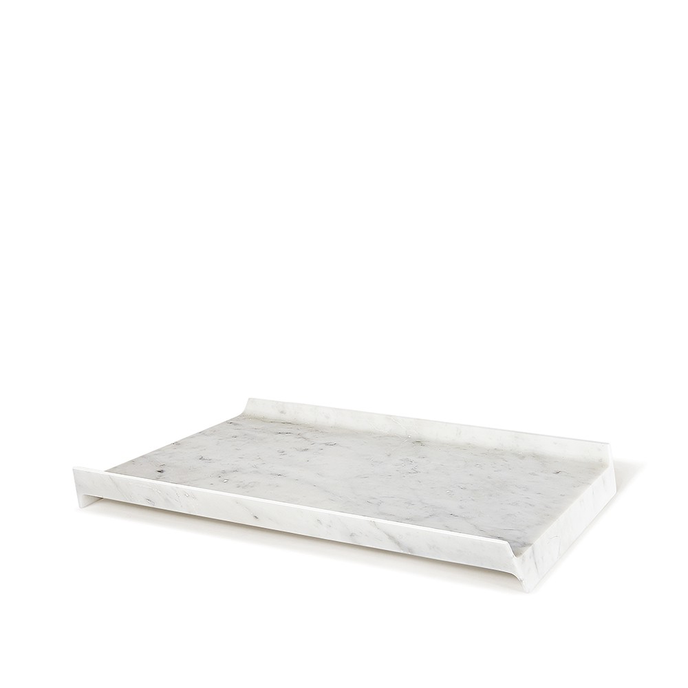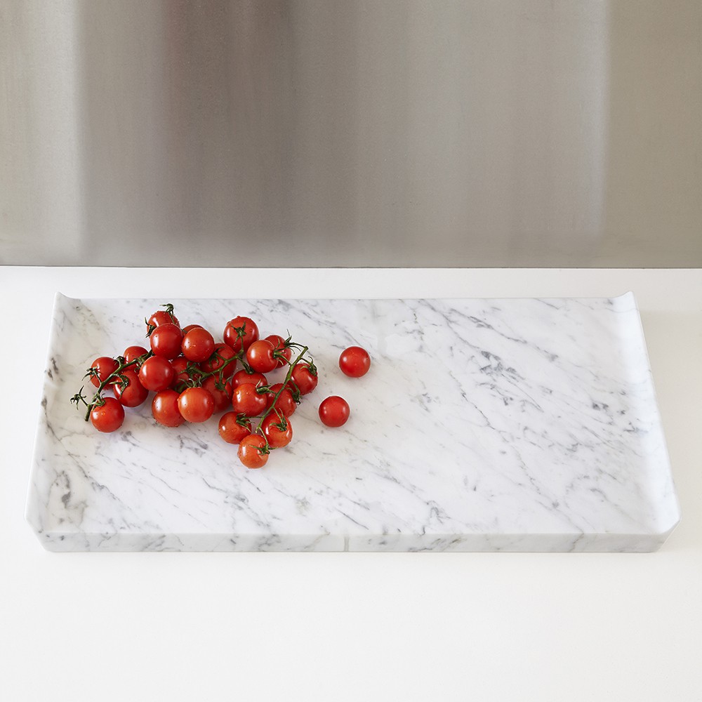 Bianca e compatta come la neve questa Slitta sfila sul tavolo. Un vassoio liscio, perfetto, iconico, un oggetto-scultura che eredita forme archetipiche del mondo classico, tanto care ai maestri del design (Enzo Mari in primis). Una liscia scultura che si dispone a ospitare cose buone da offrire, mettendole in risalto con le sue venature uniche, proprie del pezzo di marmo in cui viene tagliato. Così, questo accessorio nobile del mangiare quotidiano, ha una grana, dei riflessi e delle cromie sempre diverse che rendono ogni pezzo un unicum.