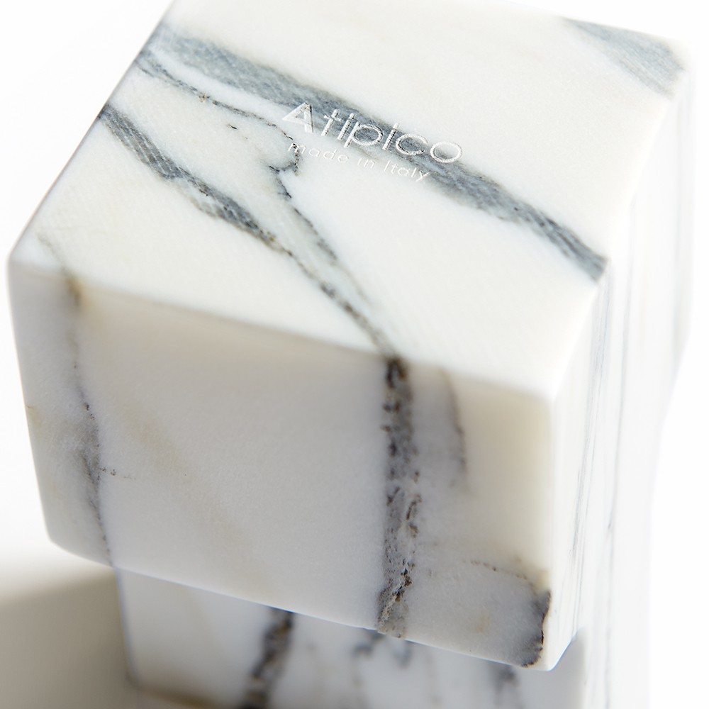 È materia scolpita dal tempo e dagli elementi, la sua bellezza iconica è esaltata dal design essenziale, quasi ipnotico di questi cubi fermalibri e fermacarte.