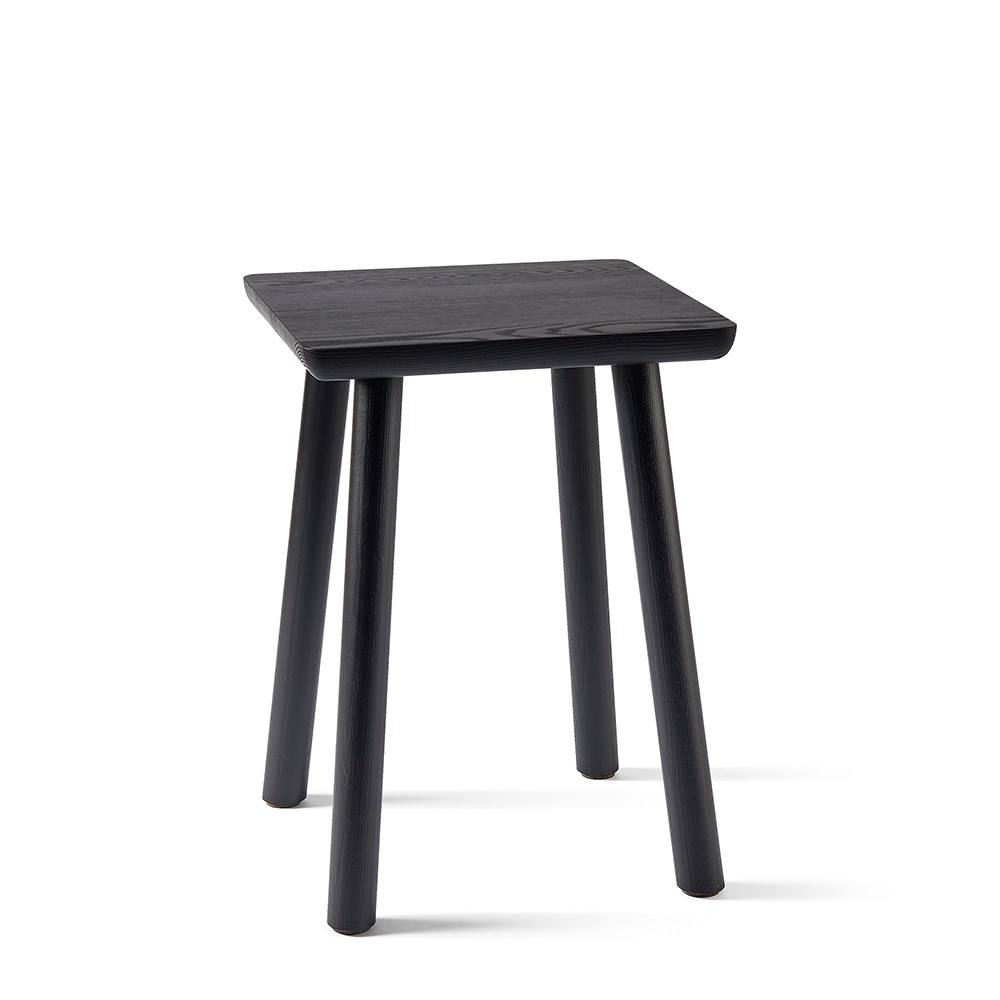 l’associazione di idee si deve alla forma della seduta con bordi curvati e al piano livellato, oltre che alle quattro gambe inclinate. Oggi la collezione si arricchisce di una mensola in due dimensioni, che riprende, anche a parete, il concept della lavorazione del legno.
