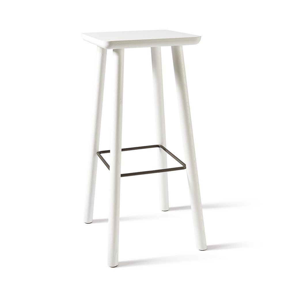l’associazione di idee si deve alla forma della seduta con bordi curvati e al piano livellato, oltre che alle quattro gambe inclinate. Oggi la collezione si arricchisce di una mensola in due dimensioni, che riprende, anche a parete, il concept della lavorazione del legno.